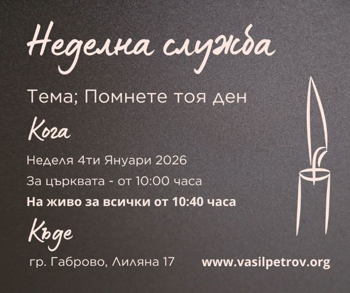 Неделна проповед, с пастор Васил Петров, 4 Януари 2026 г. не по рано от 10:40 часа на живо!
