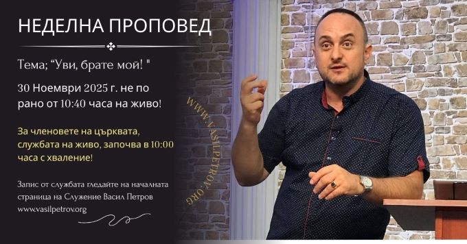 Неделна проповед, с пастор Васил Петров, 31 Август 2025 г. не по рано от 10:40 часа на живо!