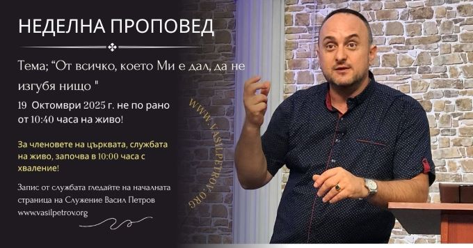 Неделна проповед, с пастор Васил Петров, 19 Ноември 2025 г. не по рано от 10:40 часа на живо!